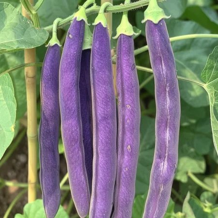 Ta hitro dozoreva sorta se lahko pobira skozi poletje zaradi svojih vijoličnih strokov, ki se ob kuhanju spremenijo v briljantno smaragdno zeleno. Rastlina doseže višino okoli 45 cm.