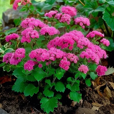 Cveti v odtenkih od bele do rožnate, rdeče, modre, vijolične, lila in rumene.