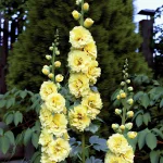 Tvori velike, skodelične, intenzivno rumene cvetove, ki obilno cvetijo od sredine poletja do jeseni.