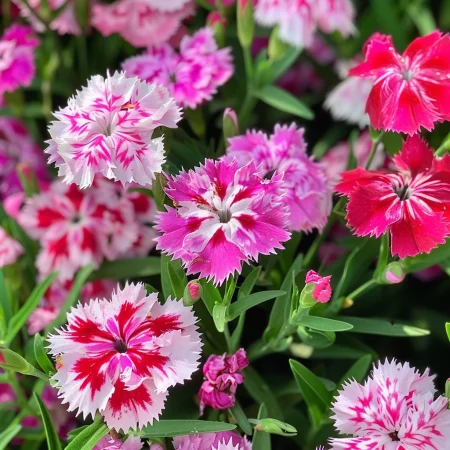 Kompaktna enoletna rastlina z živahnimi enojnimi cvetovi v različnih barvah.