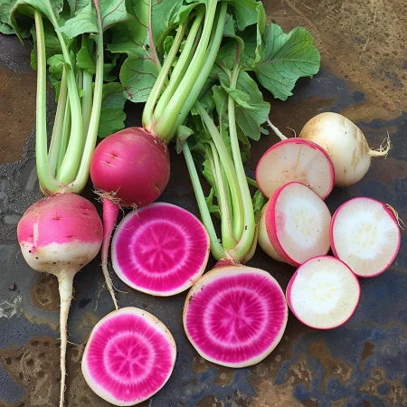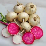 Prihranite €1.34Атрактивен азиатски сорт ряпа/репичка тип „watermelon radish“ с бледа кора и наситено розово-червена вътрешност.