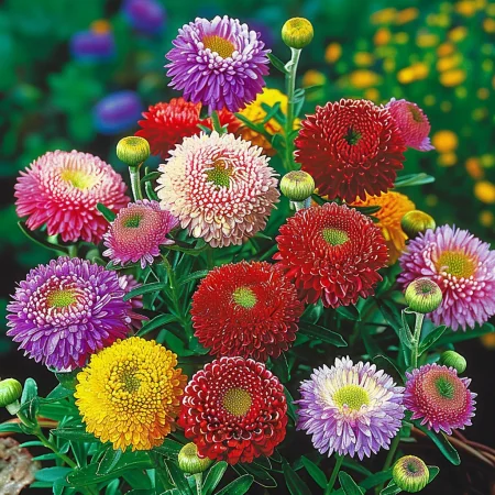 Kitajska aster je enoletna rastlina z različnimi sortami in barvami. Cveti z očarljivimi cvetovi premera 5-10 cm od začetka poletja do jeseni.