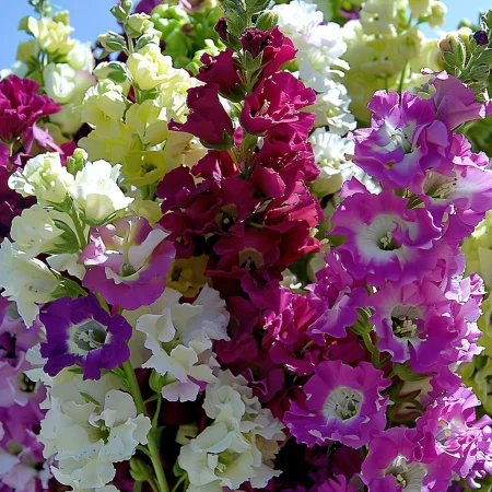 Matthiola Incana "Soverennost" se ponaša z gosto zbranimi cvetnimi klasovi. Pogosto ima intenziven vonj in je na voljo v bogati paleti pastelnih barv.